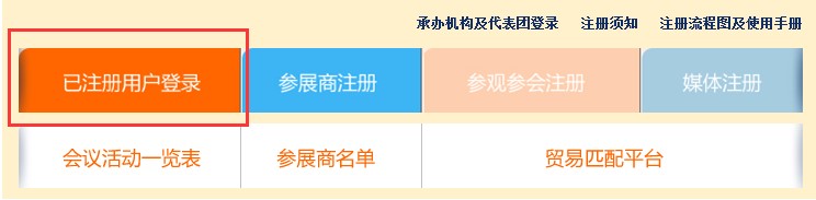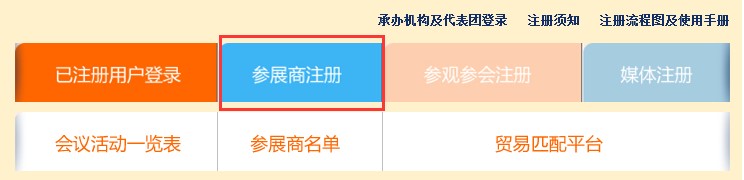 點擊紅色方框內(nèi)容,“參展商注冊”。