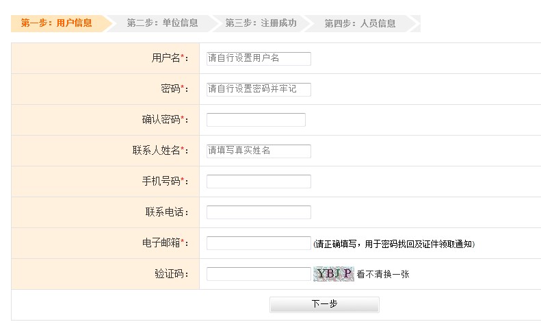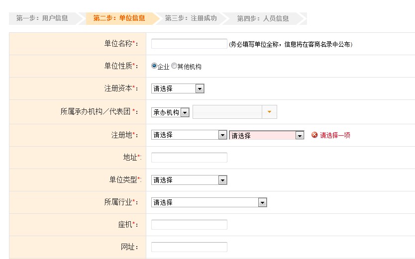 帶“*”為必填項,填寫內(nèi)容不完整,不能進入下一頁注冊。