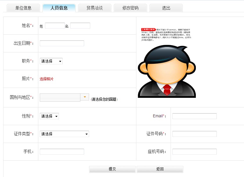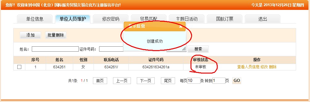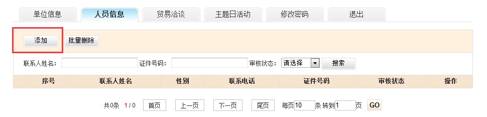 7)點擊“添加”按鈕,添加參展商人員信息。如下圖: