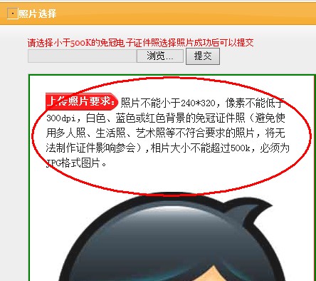 8)上傳照片時,應按規(guī)定上傳照片,否則上傳失敗。如下圖: