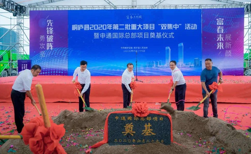 當(dāng)天上午,杭州市桐廬縣2020年第二批重大項(xiàng)目“雙集中”活動(dòng)暨申通國際總部項(xiàng)目奠基儀式在富春未來城隆重舉行。杭州市委常委、組織部長(zhǎng)毛溪浩宣布開工??h委書記方毅講話??h長(zhǎng)齊力主持。申通快遞有限公司董事長(zhǎng)陳德軍在奠基儀式上致辭。
