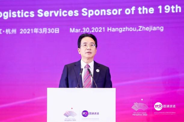 陳衛(wèi)強在致辭中表示,專業(yè)的物流服務(wù)是保障亞運會順利、圓滿舉辦的重要一環(huán)。圓通讓人印象深刻的,除了企業(yè)強大的服務(wù)能力,還有作為一家知名浙商企業(yè)深厚的家國情懷和責任擔當。這次,圓通積極投身杭州亞運會的物流服務(wù),體現(xiàn)出高度的使命感和責任感,讓人欽佩。