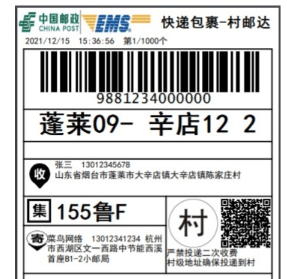菜鳥聯(lián)合中國郵政推“村郵達”面單