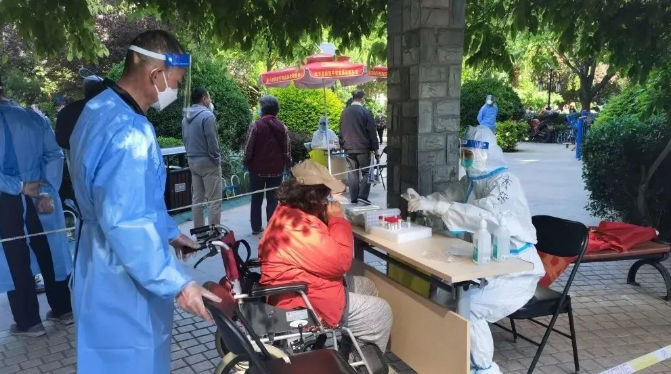 在核酸檢測現(xiàn)場,他們穿上藍色或白色防護服,他們有的負責核查健康寶、有的負責登記居民信息、有的負責維持現(xiàn)場秩序,一站就是四五個小時,顧不得喝一口水。