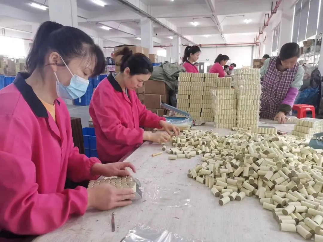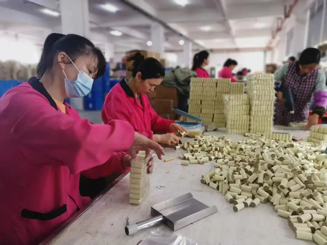 “我們這里家家種艾,全鎮(zhèn)種植面積1.5萬畝,年農(nóng)業(yè)產(chǎn)值在1800萬元左右?!睆垑Y鎮(zhèn)黨委書記蔡寧介紹,該鎮(zhèn)已經(jīng)建立了一條完整的供應(yīng)鏈,包括種植、加工、包裝、直播、倉儲、快遞等6個方面?!霸谒执逍麻_辦的工廠每年可增收20多萬元,每天從蘄北云倉發(fā)出的快件有8000~9000件。”蔡寧說。