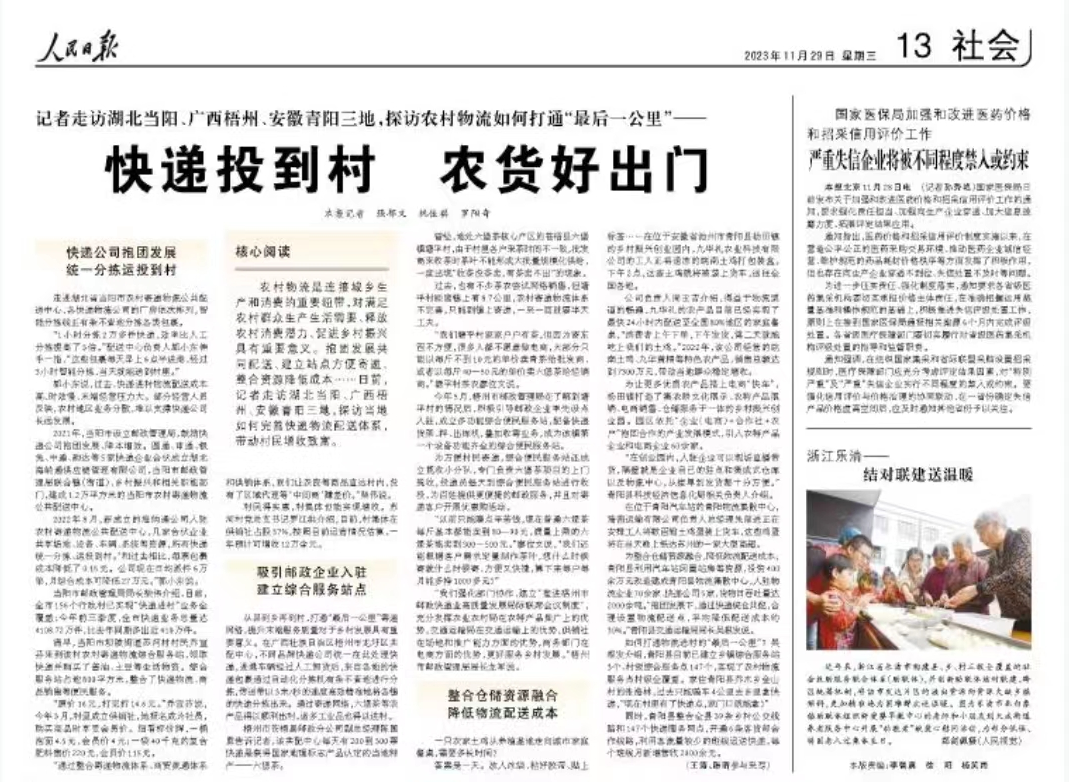 農(nóng)村物流是連接城鄉(xiāng)生產(chǎn)和消費的重要紐帶,對滿足農(nóng)村群眾生產(chǎn)生活需要、釋放農(nóng)村消費潛力、促進鄉(xiāng)村振興具有重要意義。抱團發(fā)展共同配送、建立站點方便寄遞、整合資源降低成本……日前,記者走訪湖北當(dāng)陽、廣西梧州、安徽青陽三地,探訪當(dāng)?shù)厝绾瓮晟瓶爝f物流配送體系,帶動村民增收致富。