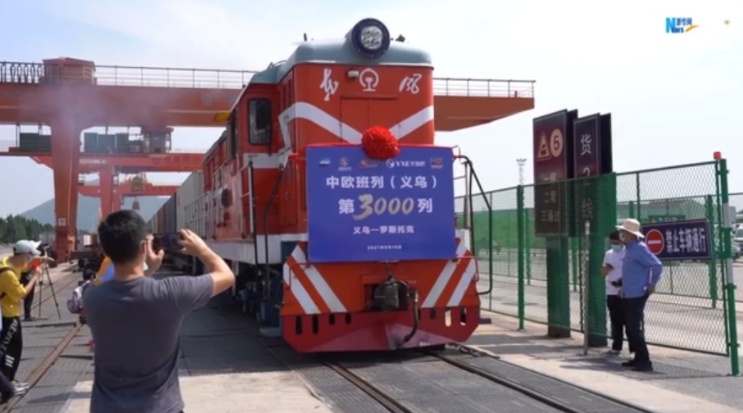 這是中歐(義新歐)班列義烏平臺(tái)累計(jì)開(kāi)行的第3000列班列。截至8月19日,義烏平臺(tái)今年累計(jì)開(kāi)行877列,共發(fā)運(yùn)72476標(biāo)箱,同比增長(zhǎng)85%。