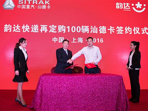 會(huì)上還進(jìn)行了韻達(dá)速遞與中國(guó)重汽集團(tuán)濟(jì)南商用車(chē)有限公司首批100輛汕德卡車(chē)的交車(chē)儀式。這是繼韻達(dá)速遞3月份引進(jìn)68臺(tái)豪沃系列車(chē)型后,又一次發(fā)力陸路運(yùn)輸舉措。在交車(chē)的同時(shí),韻達(dá)速遞與中國(guó)重汽集團(tuán)又簽署了再訂購(gòu)100輛汕德卡的合作意向。同時(shí),圓通、中通、百世快遞也與中國(guó)重汽集團(tuán)及上海安镕重汽汽車(chē)銷(xiāo)售有限公司共同簽署了合作協(xié)議。