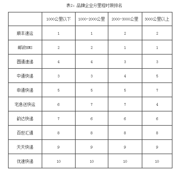 1.2014年下半年快遞服務(wù)全程時限(以下簡稱“全程時限”)的均值為59.41小時,比上半年延長1.83小時。10家品牌企業(yè)在“全程時限”指標(biāo)中的表現(xiàn)依次為:順豐速運(yùn)、郵政EMS、圓通速遞、中通快遞、申通快遞、宅急送快運(yùn)、韻達(dá)快遞、百世匯通、天天快遞和優(yōu)速快遞。