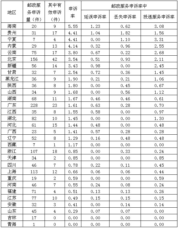 2014年05月15日來源:一、郵政服務(wù)申訴情況