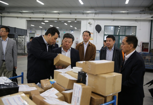 4月17日,全國政協(xié)委員、交通運輸部原副部長、中國快遞協(xié)會會長高宏峰和常務(wù)副會長兼秘書長李恵德一同視察上海郵政速遞物流有限公司。