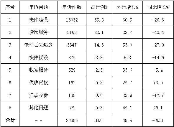 二、快遞業(yè)務(wù)申訴情況