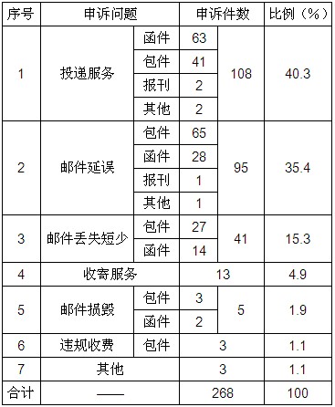 2013年12月19日來源:一、郵政服務(wù)申訴情況