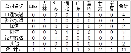2013年8月,快遞企業(yè)對?。▍^(qū)、市)郵政管理局轉辦的申訴未能按規(guī)定時限回復的有11件。
