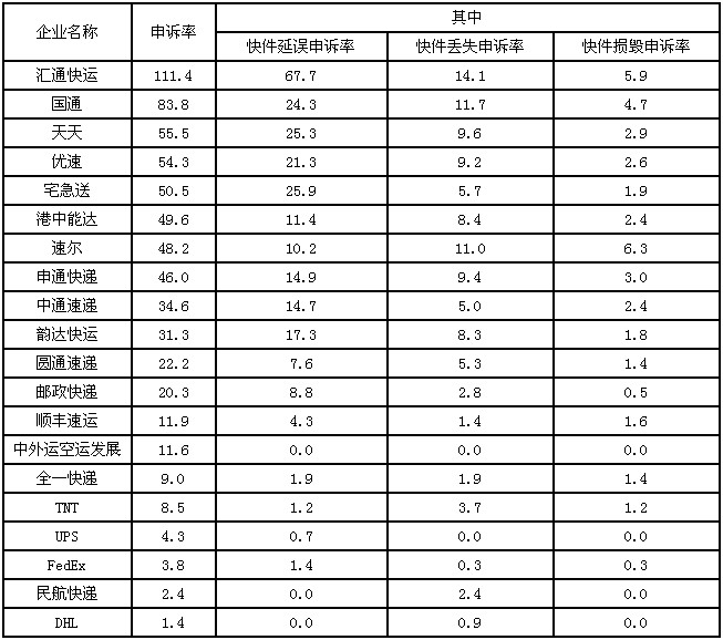 ?。ǘ┫M(fèi)者對(duì)快遞企業(yè)申訴情況