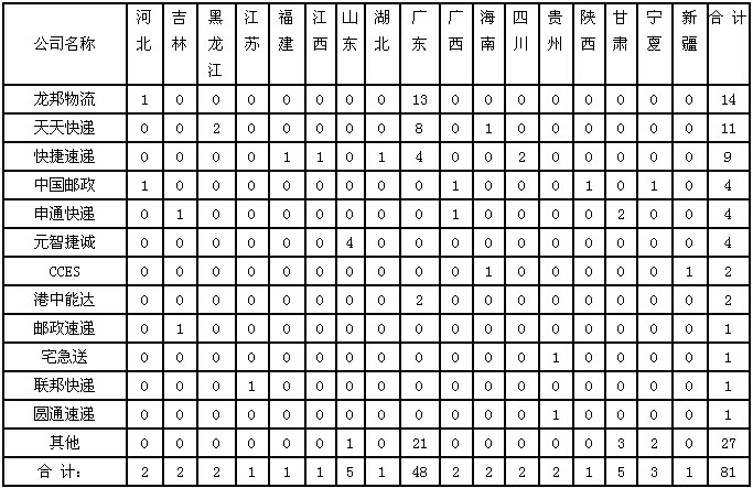 7月,快遞企業(yè)對?。▍^(qū)、市)郵政管理局轉(zhuǎn)辦的申訴未能按規(guī)定時限回復的有81件。