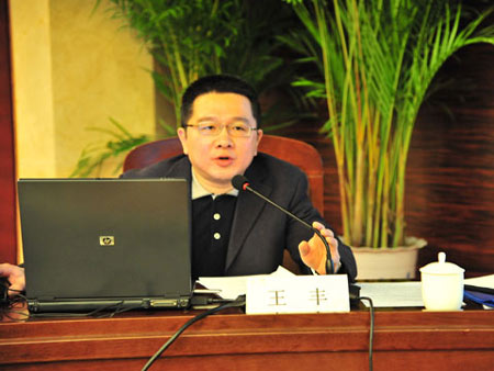 圖為市場(chǎng)監(jiān)管司副司長(zhǎng)王豐做題為《郵政管理部門依法行政應(yīng)把握的幾個(gè)要點(diǎn)》的講座。