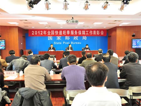 2月17日,國家郵政局召開電視電話會議,對2012年全國快遞旺季服務(wù)保障中表現(xiàn)突出的6家快遞企業(yè)進行表彰。國家郵政局副局長蘇和向受表彰企業(yè)頒發(fā)獎牌并做重要講話,要求全行業(yè)再接再厲,把旺季服務(wù)保障工作規(guī)范化、標準化、制度化,努力提高快遞服務(wù)水平,為人民群眾提供迅速、準確、安全、方便的快遞服務(wù)。