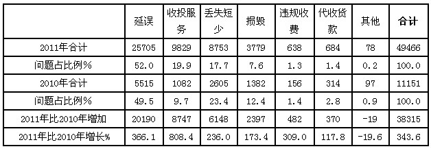 國(guó)家郵政局關(guān)于2011年12月郵政業(yè)消費(fèi)者申訴情況的通告