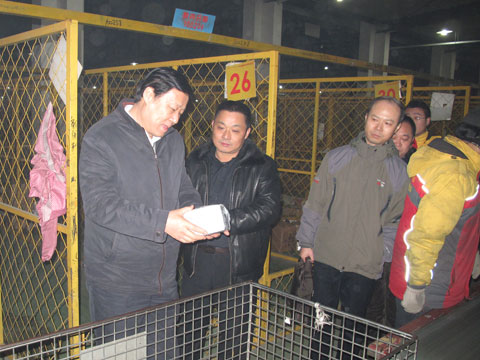為了了解快遞企業(yè)的節(jié)前快遞服務情況,1月18日晚,由馬軍勝局長和蘇和副局長各帶一隊檢查組,在事先沒有通知企業(yè)的情況下,突擊檢查企業(yè)的服務運行情況,了解企業(yè)節(jié)前服務保障工作。