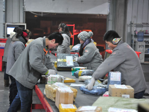 據企業(yè)帶班負責人介紹,從1月初到前幾天,業(yè)務量一直保持平穩(wěn)態(tài)勢,但最近幾天,由于距離春節(jié)越來越近,高峰期也將趨于結束,在春節(jié)期間甚至要遠遠低于平時的快件量。據了解,圓通北京分撥中心目前一天的業(yè)務量逐漸回落到8萬件左右,而申通北京分撥中心的業(yè)務也同樣有所回落,大約10萬件左右,北京中通、韻達則回落到3萬件左右。