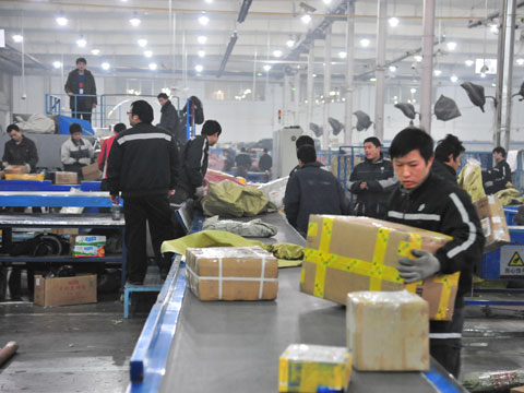 圖為北京圓通分撥中心現場。