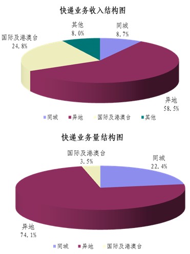 1-11月,全國規(guī)模以上快遞服務企業(yè)業(yè)務量累計完成32.4億件,同比增長56.3%;業(yè)務收入累計完成673億元,同比增長30.4%。其中,同城業(yè)務收入累計完成58.8億元,同比增長60.2%;異地業(yè)務收入累計完成393.5億元,同比增長39.9%;國際及港澳臺業(yè)務收入累計完成167.2億元,同比增長3.5%。