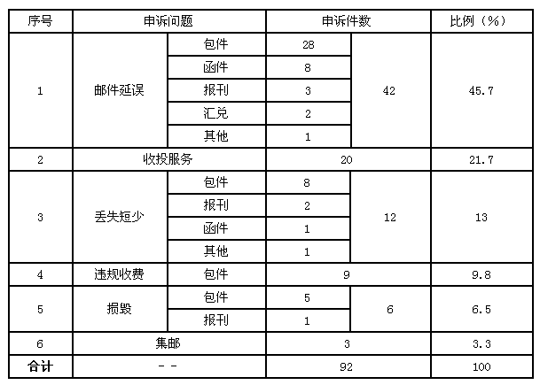 2011年09月21日來(lái)源:一、郵政服務(wù)申訴情況