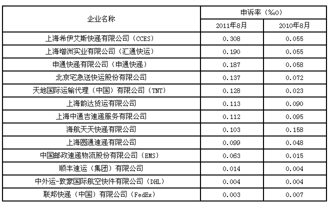 國(guó)家郵政局關(guān)于2011年8月郵政業(yè)消費(fèi)者申訴情況的通告
