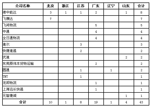 6月,快遞企業(yè)對省郵政管理局轉(zhuǎn)辦的申訴未能按規(guī)定時限回復(fù)的有43件,比上月減少28件,下降39.4%。