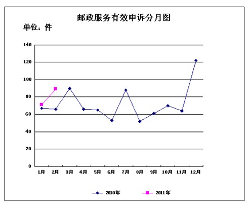 2月消費者對郵政服務申訴的主要問題是郵件延誤,占郵政服務有效申訴量的76.4%,同比增長61.9%。反映服務態(tài)度問題的有效申訴量比上月下降56.3%。