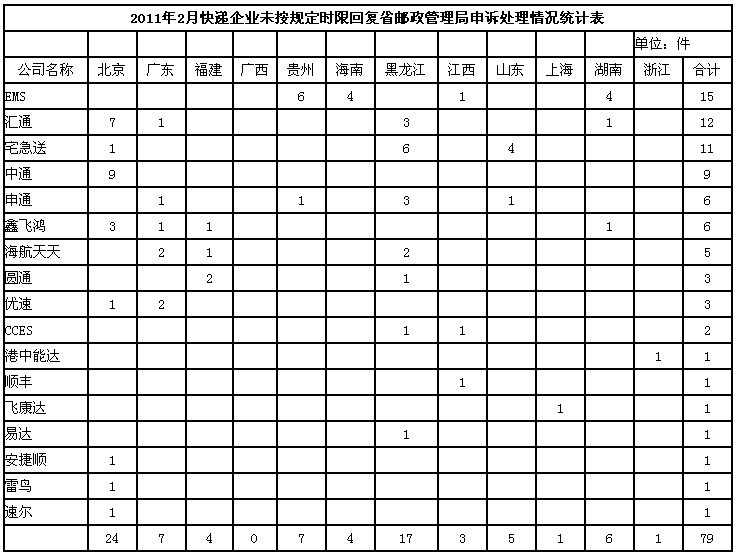 主要快遞企業(yè)申訴率2011年2月與2010年2月比較統(tǒng)計表