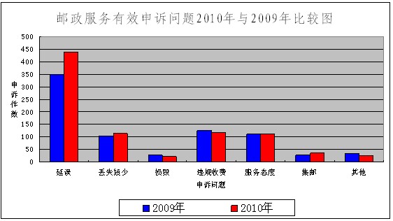 郵政服務(wù)有效申訴問題2010年與2009年比較表