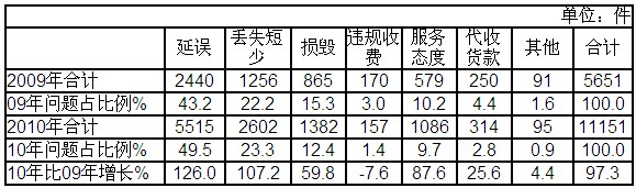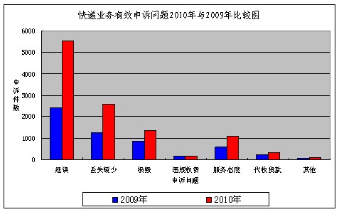 快遞業(yè)務(wù)有效申訴問題2010年與2009年比較表