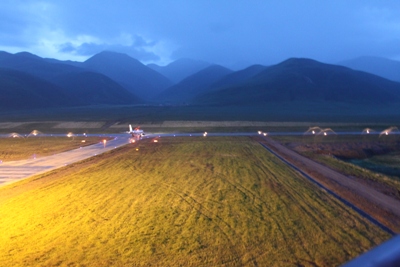青海省政府副省長張建民,民航局副局長夏興華,民航西北地區(qū)管理局局長喬新山、副局長王小輝,西部機場集團副總裁鄧國友,西寧機場總經(jīng)理程殊祖,東航西北分公司總經(jīng)理初陽等出席了在玉樹機場舉行的竣工典禮。傍晚21時許,玉樹機場夜航燈光點亮,3800米跑道在燈光的點綴下伸向夜色的草原,一架民航班機在燈光的指引下騰空而起。