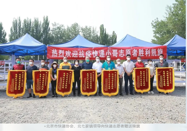 奮戰(zhàn)8天之后,10日上午,在北京市昌平區(qū)政府、北七家鎮(zhèn)和東三旗村舉辦的“熱烈歡迎快遞小哥志愿者凱旋”慰問儀式現(xiàn)場,北京市快遞協(xié)會黨支部書記王寶華帶隊迎接他們平安解封回家。 中國快遞協(xié)會副秘書長楊駿參加了活動儀式。在現(xiàn)場,北七家鎮(zhèn)武裝部部長石鳳君代表鎮(zhèn)政府和所有居民向快遞小哥表示深切感謝。