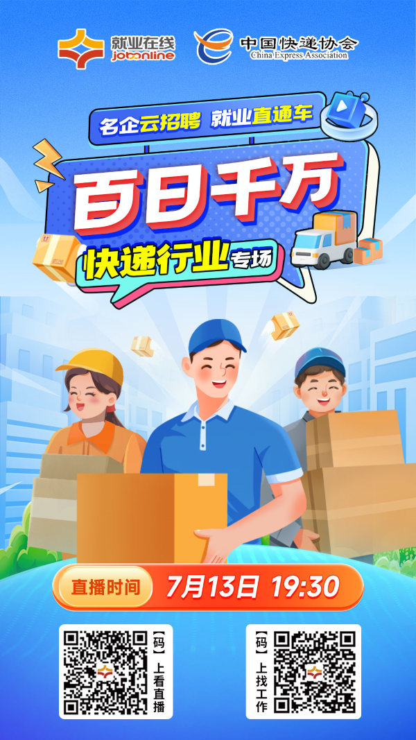 ?“就業(yè)在線”百日千萬專場(chǎng)直播,攜手中國(guó)快遞協(xié)會(huì)“職”為你來