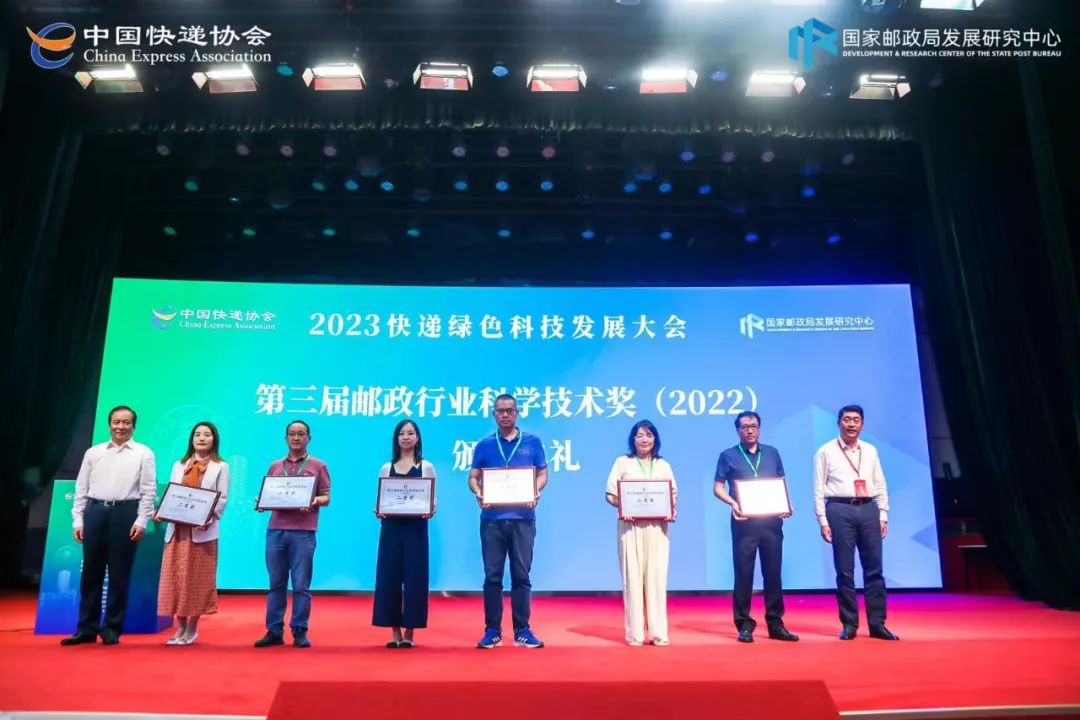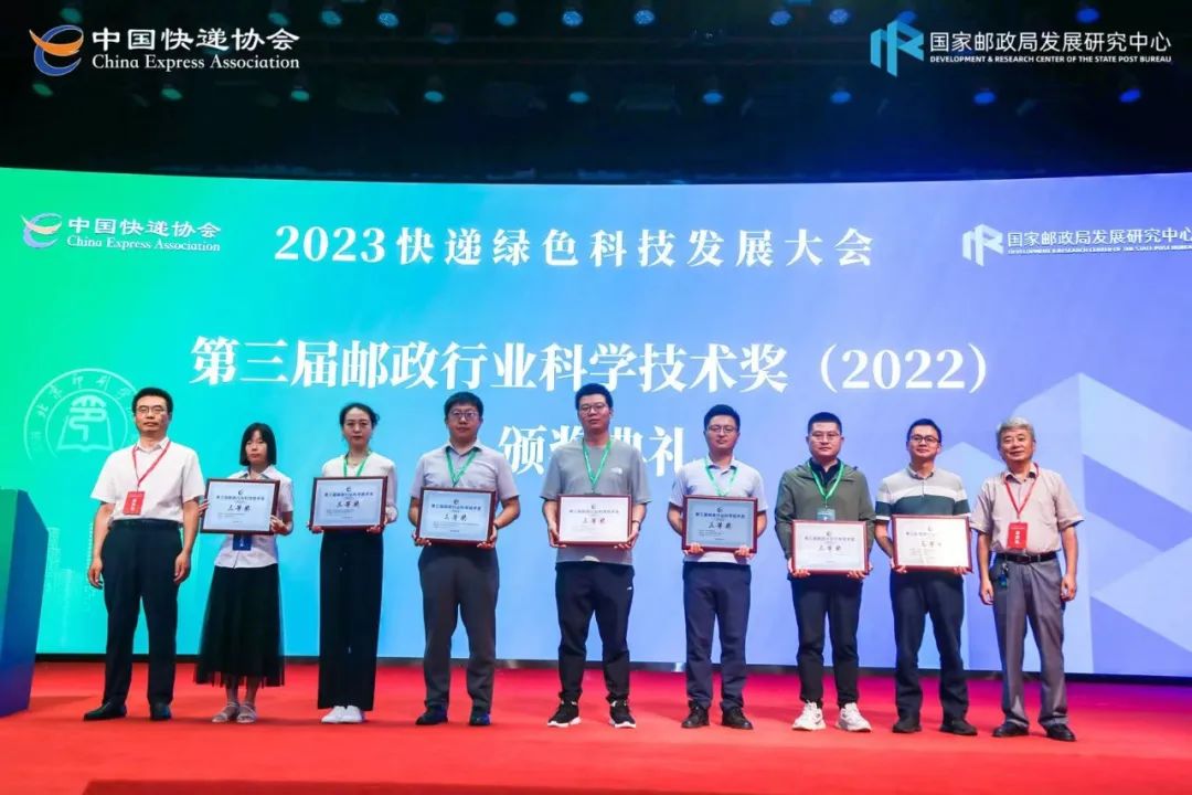 中國快遞協會會長高宏峰等領導在會上為獲獎單位頒發(fā)了第三屆郵政行業(yè)科學技術獎(2022)。寄遞渠道安全監(jiān)管“綠盾”工程建設領導小組辦公室申報的《郵政寄遞渠道安全監(jiān)管“綠盾”工程建設項目(一期)》、浙江啄云智能科技有限公司申報的《郵政業(yè)高速智能安檢機研發(fā)及應用》、北京京東振世信息技術有限公司申報的《助力防疫保供:京東物流應急決策超腦系統》和浙江菜鳥供應鏈管理有限公司申報的《基于多模態(tài)及因果AI的城市物流計算系統》獲得了一等獎。