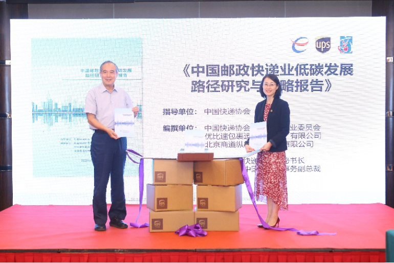 研討會上,中國快遞協(xié)會副秘書長焦錚和UPS中國區(qū)公共事務(wù)副總裁吳靜共同發(fā)布了《郵政快遞業(yè)低碳發(fā)展路徑研究與策略報告》。