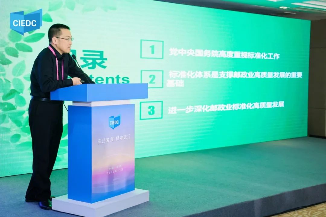 全國郵政業(yè)標準技術委員會副主任委員兼秘書長潘迪就“構建高質量發(fā)展的郵政業(yè)標準體系”做主旨演講