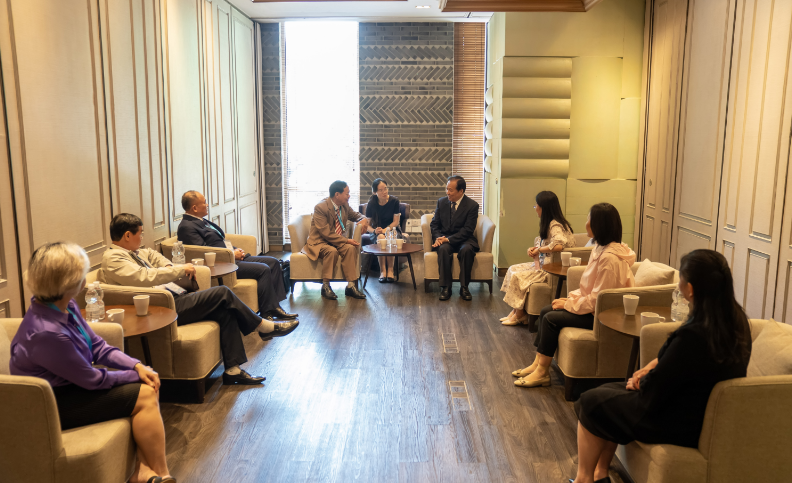 會(huì)議開始前,中國快遞協(xié)會(huì)副會(huì)長兼秘書長韓瑞林親切會(huì)見了以杜宣和副會(huì)長為團(tuán)長的越南汽車運(yùn)輸協(xié)會(huì)代表團(tuán)一行,董曉云副秘書長陪同會(huì)見。