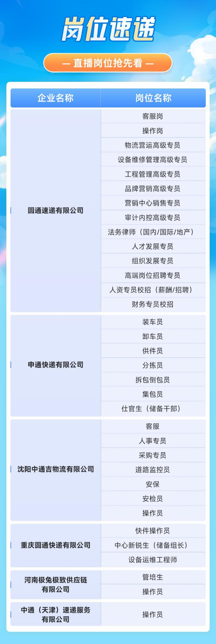 2024年07月01日來源:中國快遞協(xié)會足不出戶就能找到好工作!2024年7月4日19:30,“就業(yè)在線”攜手中國快遞協(xié)會繼續(xù)開展百日千萬招聘直播活動。中國快遞協(xié)會自成立以來,一直致力于促進快遞業(yè)穩(wěn)定、有序發(fā)展,本次快遞行業(yè)專場聯(lián)合圓通、申通、中通、極兔等知名快遞企業(yè),為求職者帶來快遞行業(yè)一線操作、運營管理、儲備干部等多種類型的崗位,高薪好崗,“職”等你來!