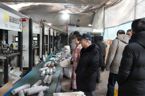 在平泉鎮(zhèn)哈叭氣村,調(diào)研組先后考察了菌棒廠和太陽能路燈項目。在菌棒廠,詳細(xì)詢問生產(chǎn)規(guī)模、技術(shù)支持、產(chǎn)品銷路及帶動村民就業(yè)增收等情況,了解到該項目有效盤活當(dāng)?shù)剞r(nóng)業(yè)資源,為脫貧勞動力提供了就近就業(yè)崗位,助力村集體經(jīng)濟發(fā)展壯大;一路上嶄新的太陽能路燈坐落兩旁,徹底解決了村民