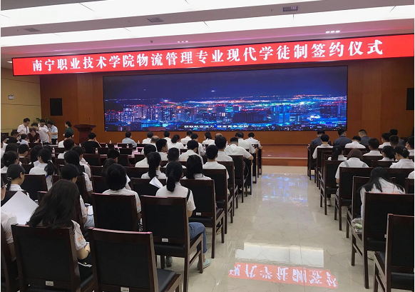 9月3日南寧職業(yè)技術學院物流管理專業(yè)現(xiàn)代學徒制開班儀式在學院會議中心二號報告廳舉行。