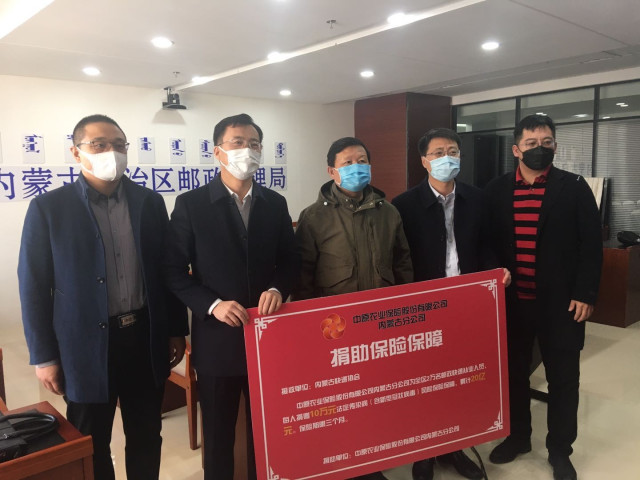 內(nèi)蒙古自治區(qū)郵政、快遞從業(yè)人員獲贈(zèng)二萬(wàn)份防護(hù)保險(xiǎn)