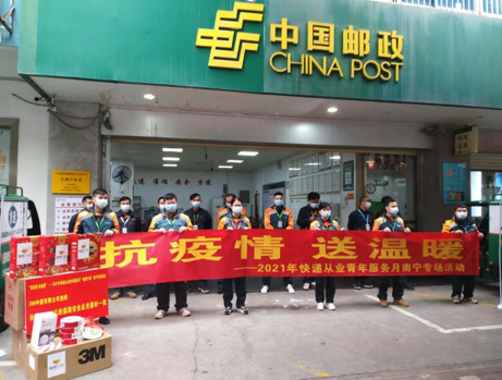 廣西共青團(tuán)委員會(huì)、廣西郵政管理局、廣西快遞協(xié)會(huì)、南寧共青團(tuán)委員會(huì)、南寧郵政管理局、南寧快遞行業(yè)協(xié)會(huì)等六部門(mén)舉行“抗疫情送溫暖”活動(dòng)