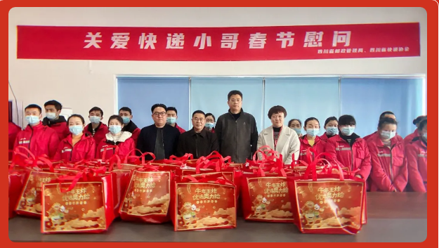 2月5日上午,四川省郵政管理局及四川省快遞協(xié)會(huì)前往四川極兔極致供應(yīng)鏈管理有限公司(簡(jiǎn)稱“四川極兔速遞”),看望慰問快遞人員,傳遞溫暖真情,為他們送上新春暖心禮包。