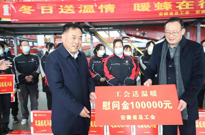 此前,安徽省總工會、安徽郵政管理局聯(lián)合慰問組已赴蕪湖、蚌埠、六安等9地市,向辛勤工作的快遞企業(yè)員工代表送上新春祝福和暖心禮包,讓廣大職工切身感受到黨和政府的關懷和工會大家庭的溫暖。