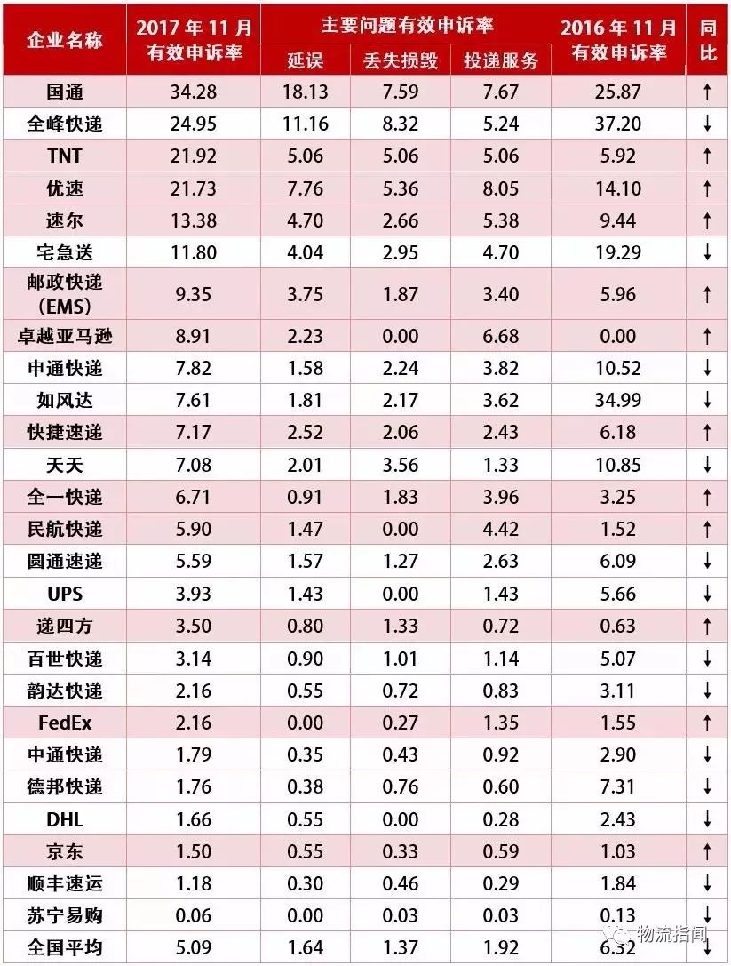 ?11月快遞申訴紅黑榜出爐,順豐、德邦、中通、韻達(dá)表現(xiàn)搶眼