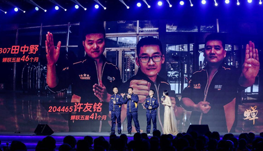 3月17日,許友銘作為德邦快遞234位金星快遞員之一,剛從德邦快遞董事長崔維星手中接過價值10萬元的金磚年終獎。